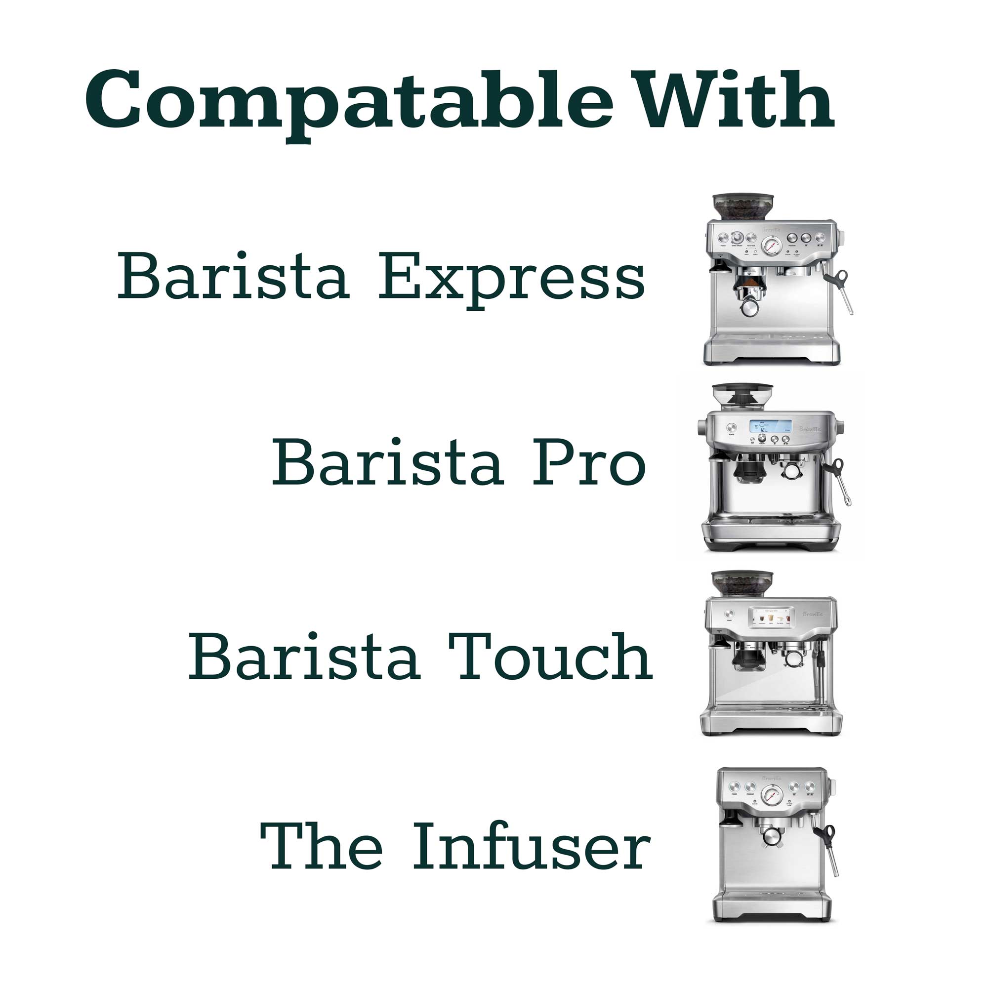 Compatibility - This 54mm bottomless portafilter and 53mm distributor/tamper were designed to fit the Barista Express, Barista Pro, Barista Touch, Bambino Plus, Infuser, and Duo-Temp Pro.